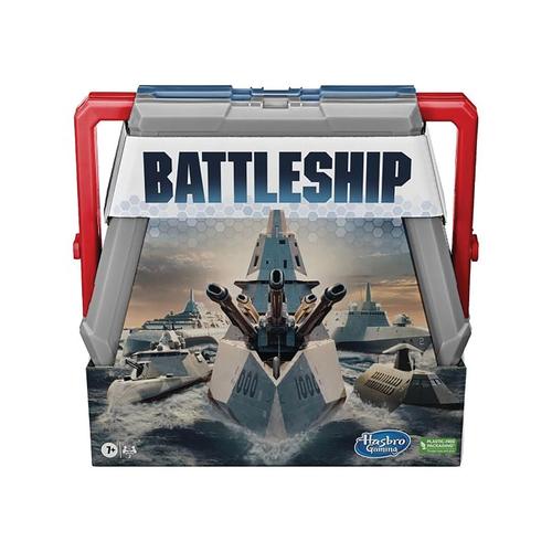 This Battleship board game is the classic game of naval combat that brings together competition, strategy, and excitement! In head-to-head battle, 2 players search for the enemy's fleet of ships and destroys them one by one. With convenient portable battle cases and realistic looking naval crafts, the Battleship game puts players right in the middle of the action. Players command a powerful fleet that includes an aircraft carrier, a destroyer, a submarine, a patrol boat, and a battleship. Each player announces the coordinates of each strike and sees if it hits. Position ships strategically to survive an opponent's relentless strikes, and track hits and misses with red and white pegs on the ocean grid. No ship is safe in this game of stealth and suspense. It's a fun indoor activity for kids ages 7 and up, and it's easy to pack up and take on the go.